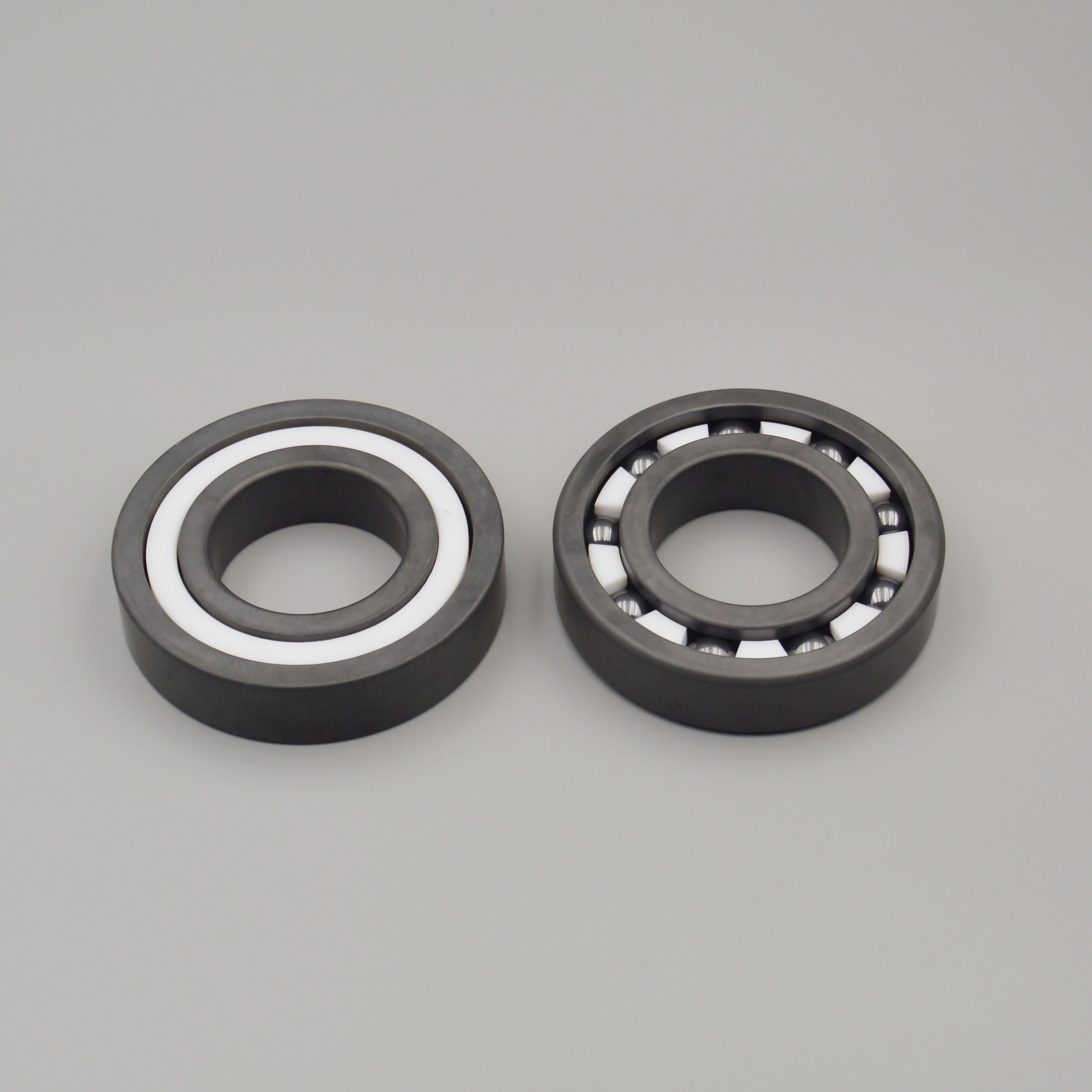 3.碳化硅(SiC)还具有比氮化硅(Si3N4)更优越的性能耐腐蚀、抗生锈、抗酸碱盐及气体侵蚀、耐高温、抗低寒、无磁、电绝缘、耐磨损、无油自润滑等更优。一般配置PTFE保持器,产品可适用于特殊环境及非常恶劣环境中使用。