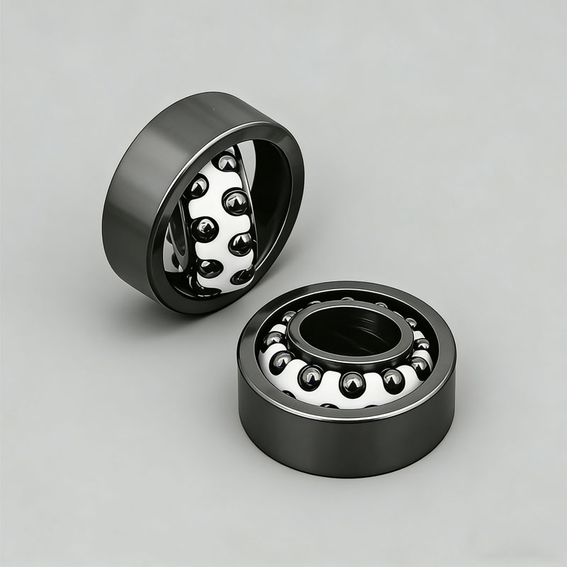 碳化硅(SiC)全陶瓷调心球轴承是将碳化硅(SiC)材料的性能结合调心轴承的自动调心能力的特种轴承。它的特点是在超高温、强腐蚀等极端工况下,能够自动补偿安装误差和轴弯曲,同时具备高耐磨寿命。