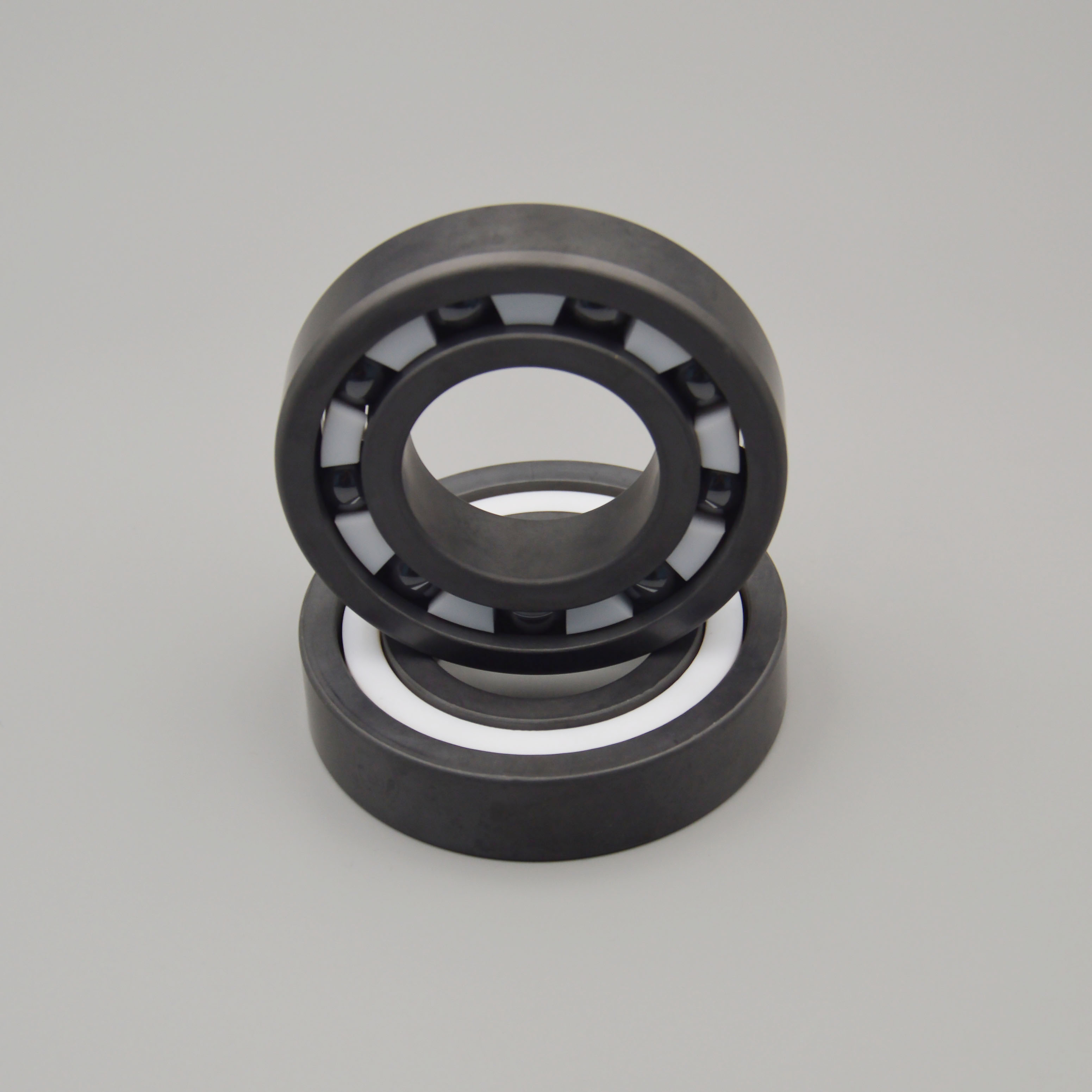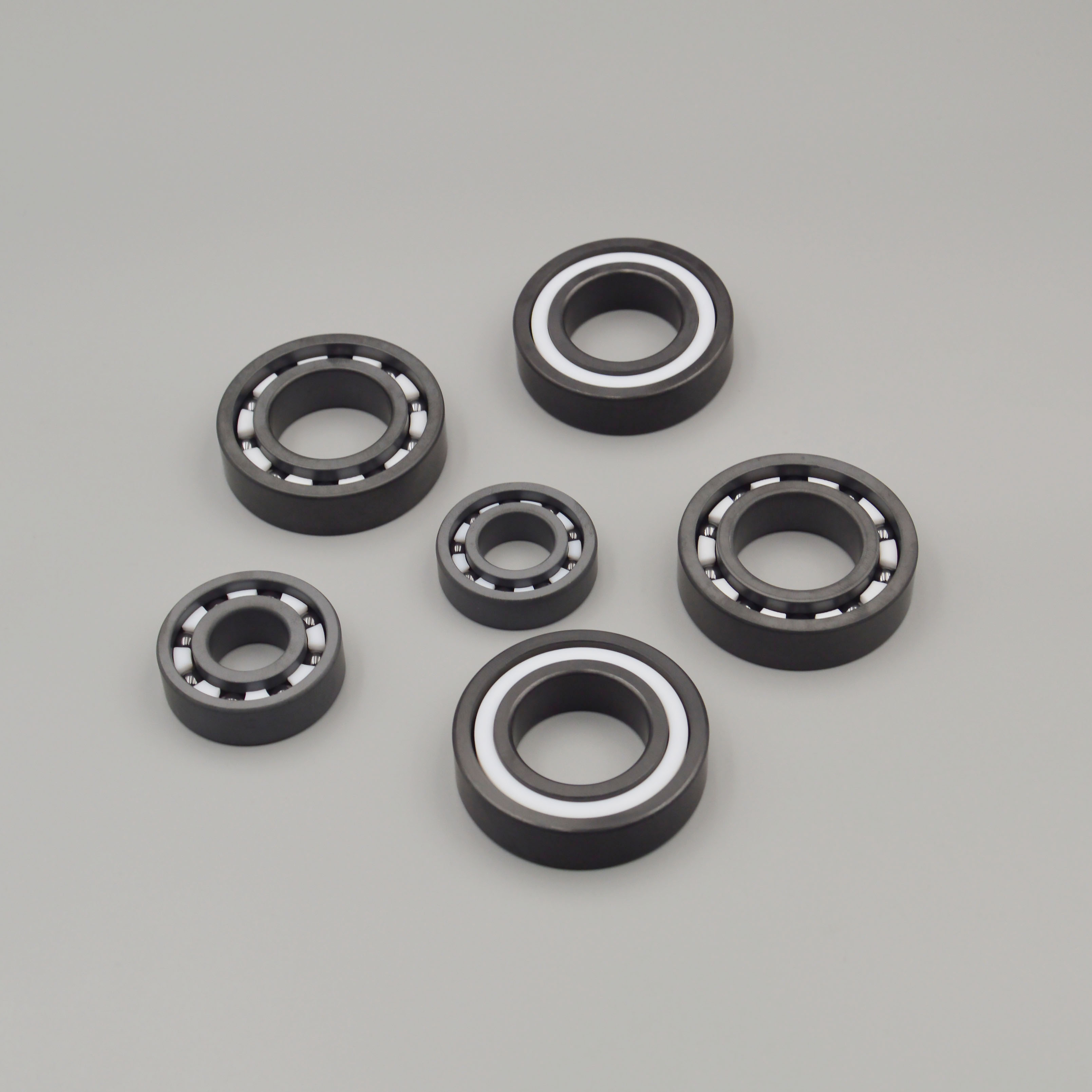 2.性能特点:高硬度与刚性,材料硬度极高,弹性模量高于钢材,受力变形极小,能提供稳定的支撑;低摩擦与自润滑,摩擦系数低,在润滑剂失效或真空环境下仍能运行;轻量化,密度约为轴承钢的40%,有助于降低转动惯量。